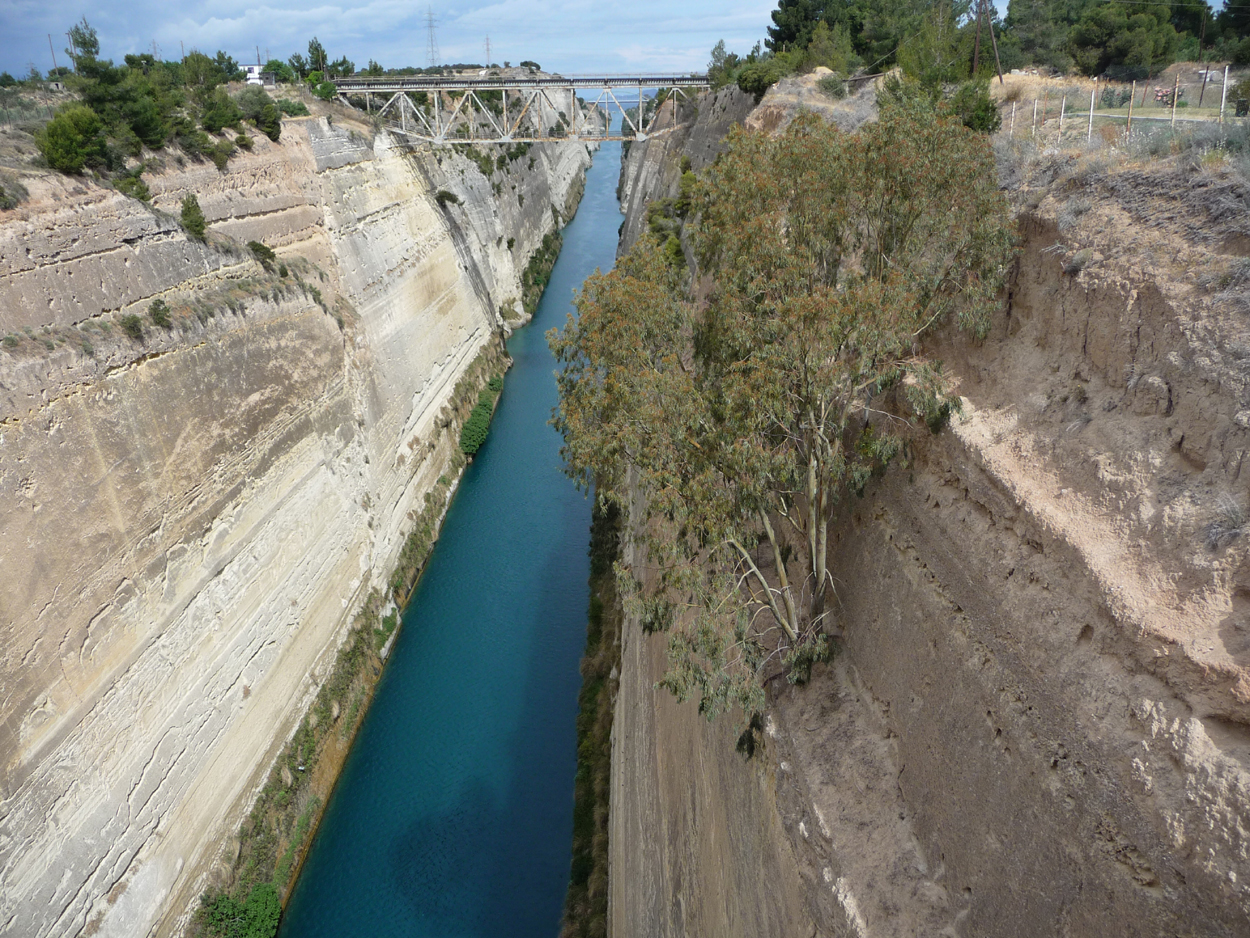 Et sur la route de Loutraki le fameux canal de Corinthe où nous avons fait une petite halte (toujurs du monde, beaucoup d'autocars s'y arrêtent).