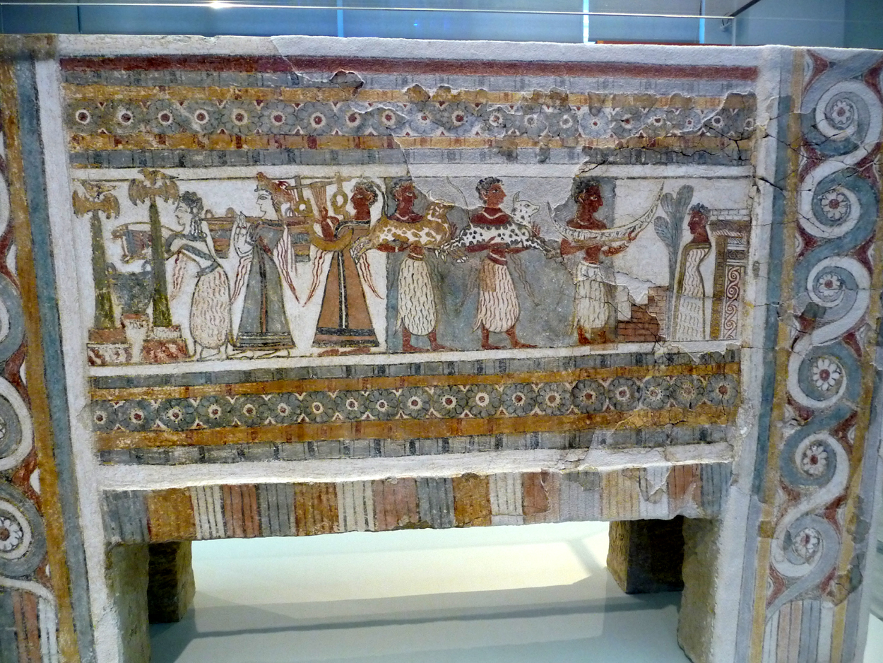 A l'étage la salle des fresques de Cnossos et d'autres consacrées à la période romaine; nous revoyons Cerbère qui garde les enfers avec ses maîtres, dieu et déesse de l'enfer