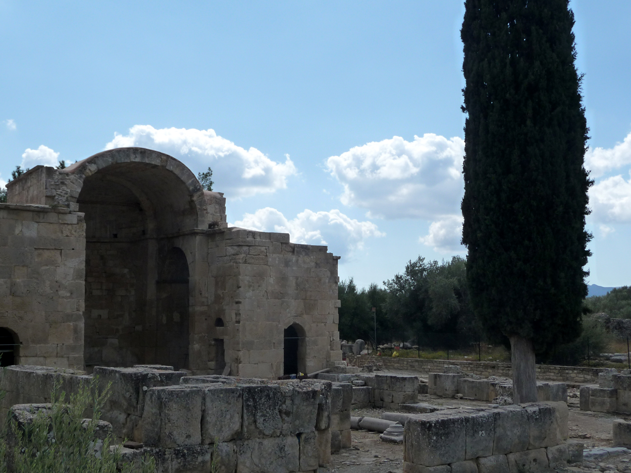Autre site dans le secteur : Gortyne, célèbre pour les lois gravées, juste derrière l'odeon. Un regret, on ne peut approcher actuellement de l'église Saint Tite car elle est en réfection, on doit donc la regarder derrière un grillage.