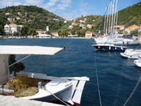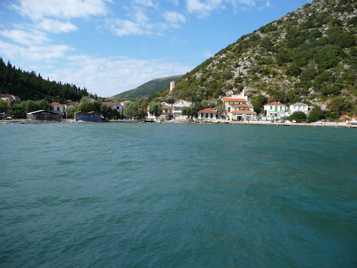 En deux ou trois jours on connait tous les coins d'Ithaque accessibles par des routes carossables. Nous devions prendre le bateau de 15h30 le vendredi 28 mais avec le passage de la tempête ce fut un peu mouvementé. A la télévision ou sur meteo.gr on voyait des vents de force 9 ou 10 au sud du Péloponnèse, dans les cyclades ou en Crète. Heureusement dans notre secteur le vent s'est limité à des forces 5 ou 6. Néanmoins le jeudi 27 on ne sait pas s'il y aura un ferry le lendemain, à l'agence on me dit de revenir le lendemain matin. Ce vendredi matin et jusqu'à 13h30 heure de fermeture pas de nouvelles; on me conseille d'aller demander à la police portuaire juste à côté. Ce n'est qu'à 14h15 qu'on saura qu'il y aura bien un ferry mais avec "au moins 1h30 de retard" (il en aura finalement 2). Ca soufflera un peu pendant la traversée mais on est loin d'être en pleine mer. Au port on m'explique que chaque port décide si un bateau part ou non; comme notre ferry partait d'Astakos sur le continent c'est ce port qui a longtemps retardé le départ car les conditions étaient difficiles entre Astakos et Ithaque (beaucoup plus facile etre les deux îles).