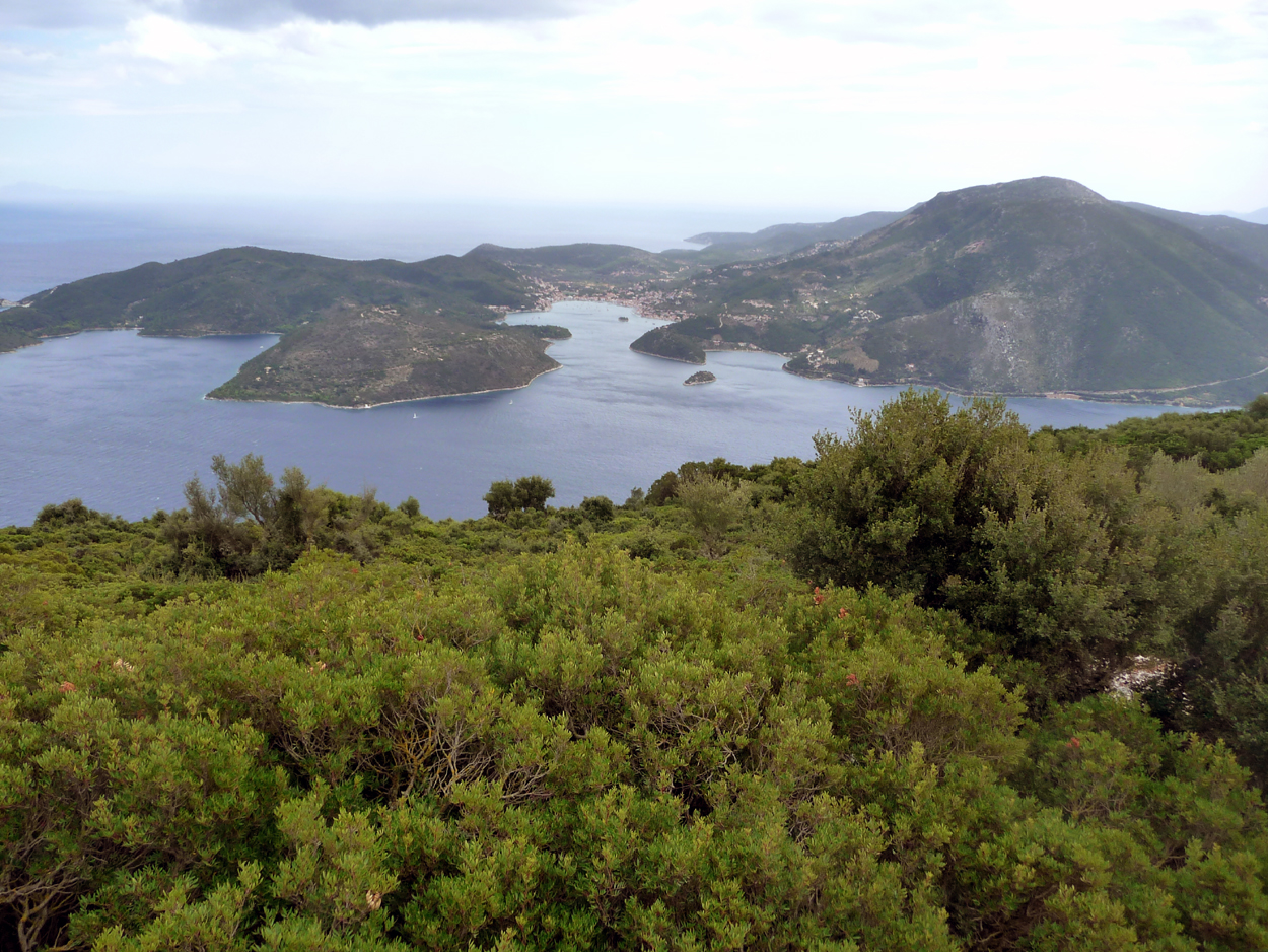 Pour aller vers Frikes et Kioni deux routes; l'une vers l'est qui passe par un monastère et donne une vue superbe sur la baie de Vathi. Plusieurs endroits pour s'arrêter mais le meilleur point de vue me semble être depuis le monastère.