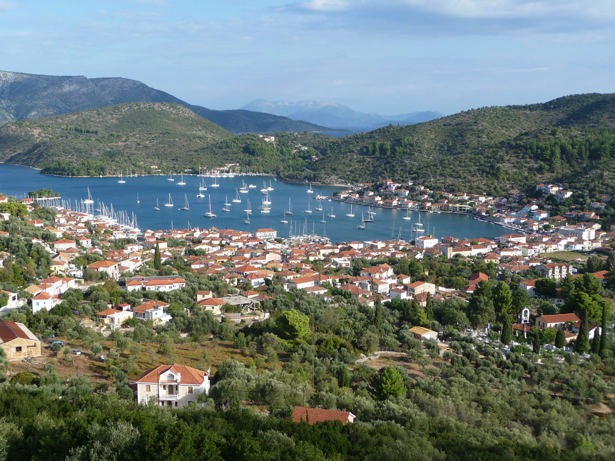 Ithaque est pour moi le complément indispensable d'une visite de Céphalonie. Très facile d'aller d'une île vers l'autre: on prend le bateau (Ionion pelagos pour nous) à Sami et on est à Pissaetos en 35 mn. Nous logeons à Vathi à l'hôtel Calypso d'où on a peut être la plus belle vue qu'on ait jamais eue en Grèce; depuis la chambre ou le grand balcon vue imprenable sur la baie de Vathi et ses voiliers (qui seront souvent en rade à cause du mauvais temps). Accueil super sympa du propriètaire; les chambres sont sans petit déjeuner mais le premier matin il nous propose en guise de bon accueil café, croque monsieur et brioche. C'est vraiment un très bel endroit pour séjourner (il faut une voiture car l'hôtel est assez loin à pied du centre de Vathi, mais c'est très rapide et facile en voiture). Vathi reste assez animée en cette fin de saison et comme souvent très peu de français; quelques restos ou bars sympas, jolie ballade à pied pour faire le tour de la baie.
