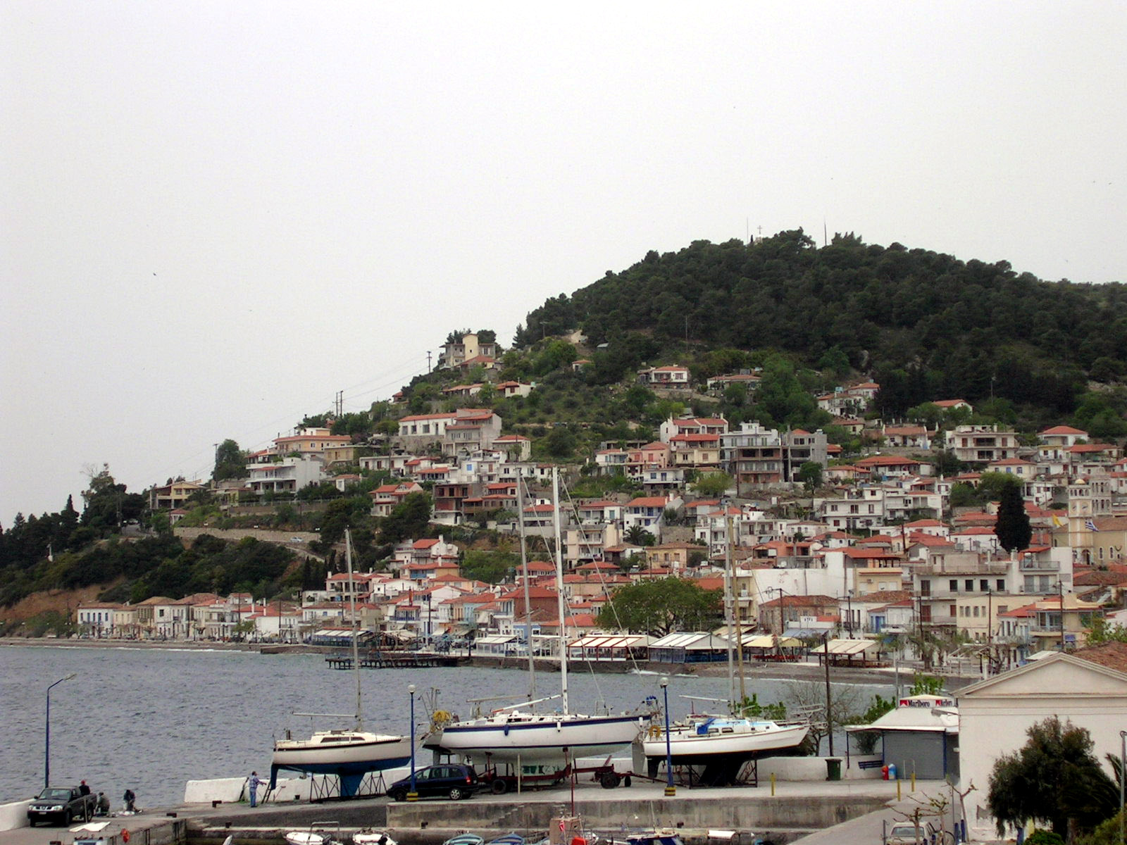 Le soir nous aurons une petite averse pendant que nous serons en train de diner. Dans ce tout petit port qu'est Limni, comment se fait-il qu'il y ait autant de monde le samedi soir ? Ils déboulent de partout et les jeunes font admirer leur art du tuning. Heureusement l'hôtel est situé dans la partie la plus calme, mais ça circule très tard dans la nuit, ou très tôt le matin.