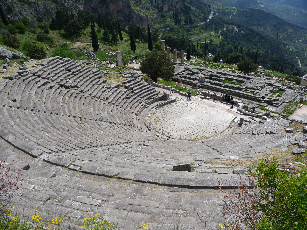 Si vous résidez dans la ville de Delphes, je vous recommande d'aller faire la visite à pied. Une petite déception cette année : le stade est fermé et donc sachez que si vous grimpez tout en haut du site vous ne pourrez y courir, mais seulement le voir de l'extérieur ce qui n'a que peu d'intérêt; vous pouvez donc vous arrêter au théâtre..