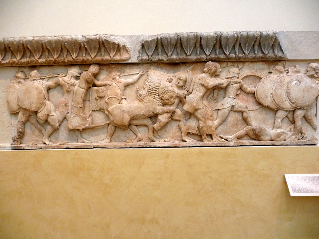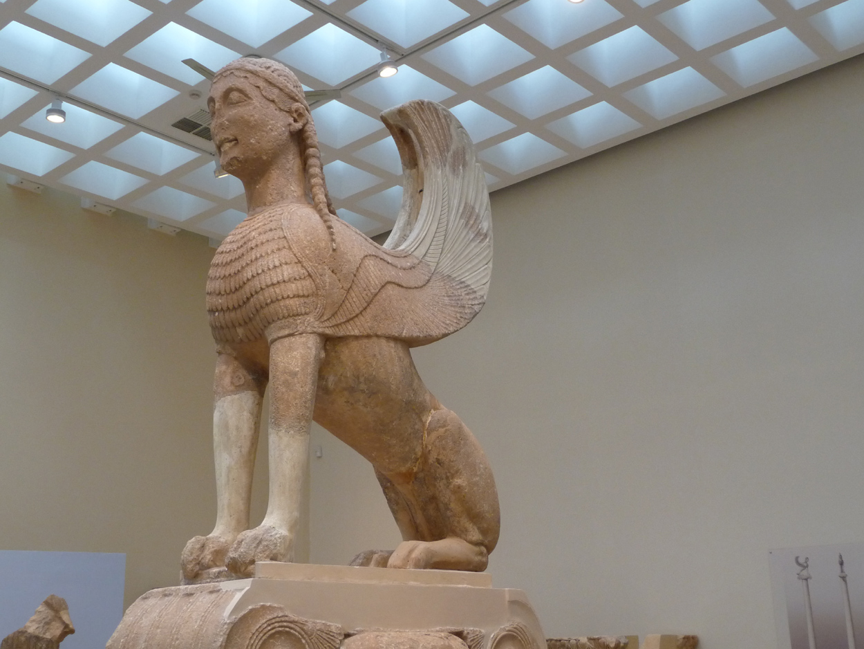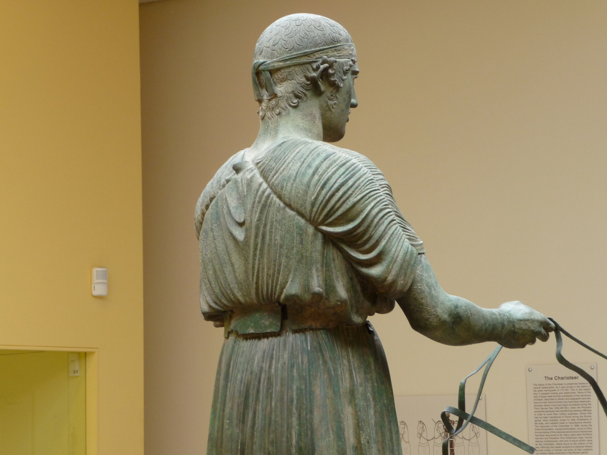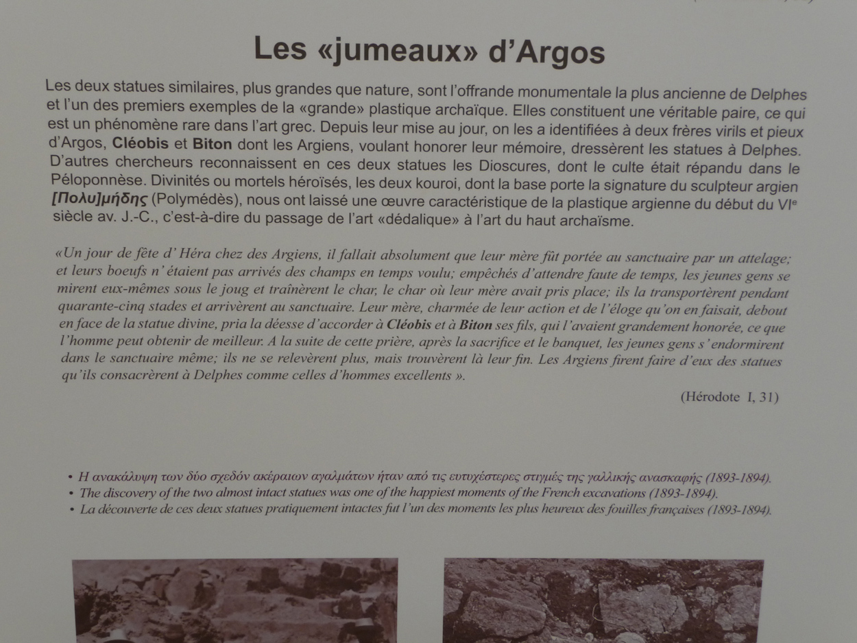 un sphnix, les fameux jumeaux d'Argos, la colonne des danseuses et le plus connu, l'aurige de Delphes
