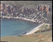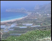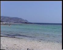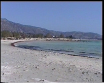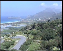 Départ vers l'ouest et tout d'abord Kastelli. Attention au piège : cette ville s'appelle parfois Kissamos, et c'est plutôt ce deuxième nom qui figure sur les panneaux indicateurs. Je vous signale qu'il est difficile de gagner la grande route à quatre voies qui va vers Kissamos, elle est très mal indiquée. Une solution est de partir de l'ouest du rempart et de remonter le long de la mer (s'il n'y a pas de marché). On arrive finalement à un feu tricolore où si on va tout droit on va vers cette route, et si on prend à droite toujours vers Kisamos mais par l'ancienne route qui suit le bord de mer (très agréable si vous n'êtes pas pressés, de belles plages).