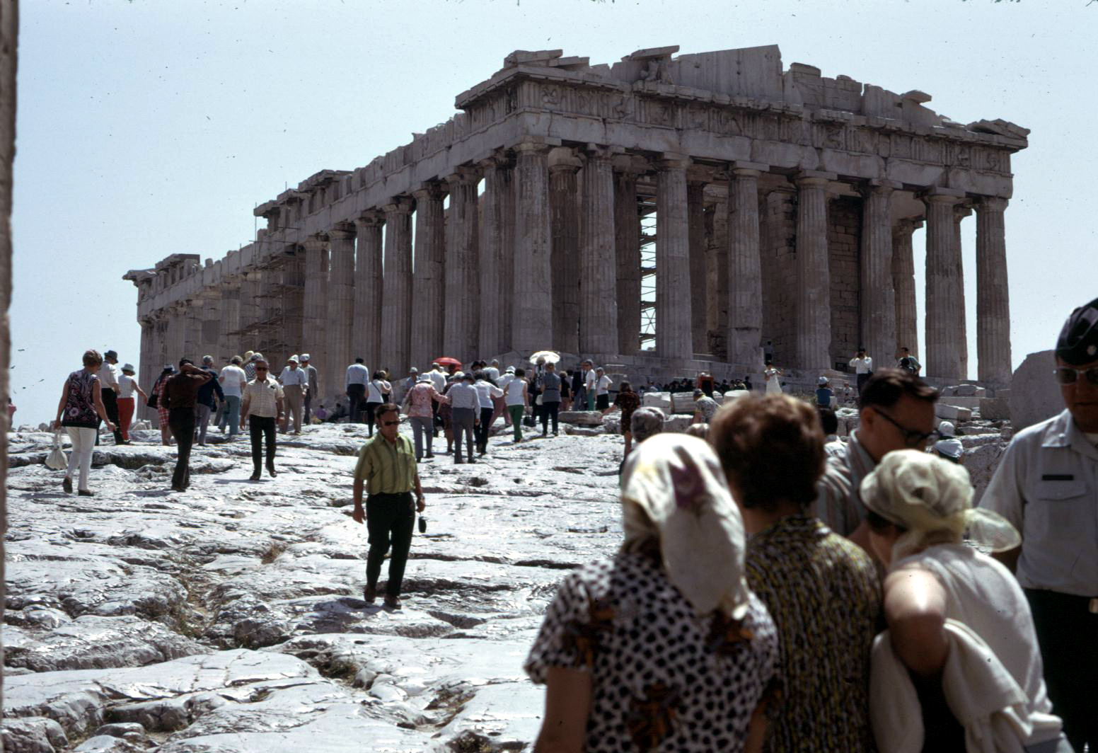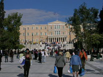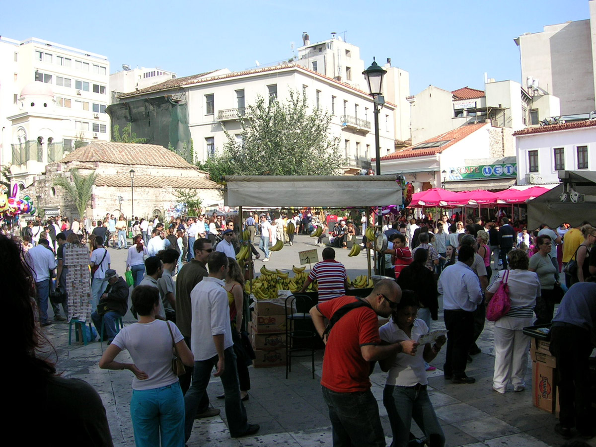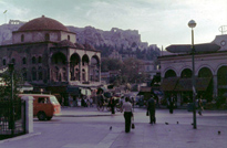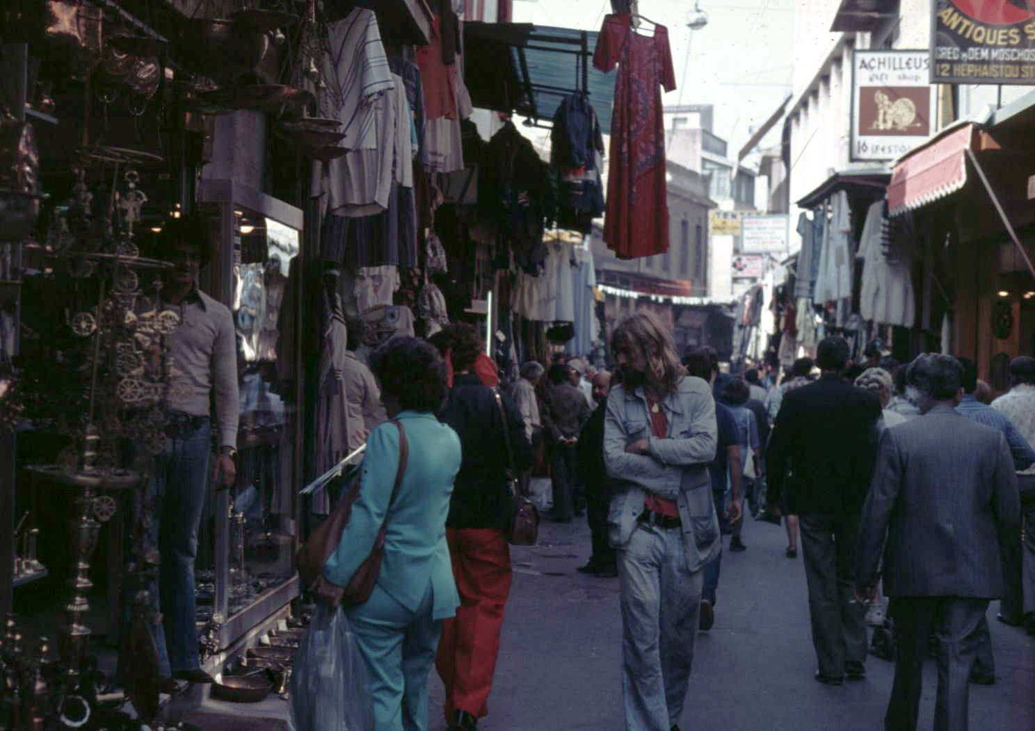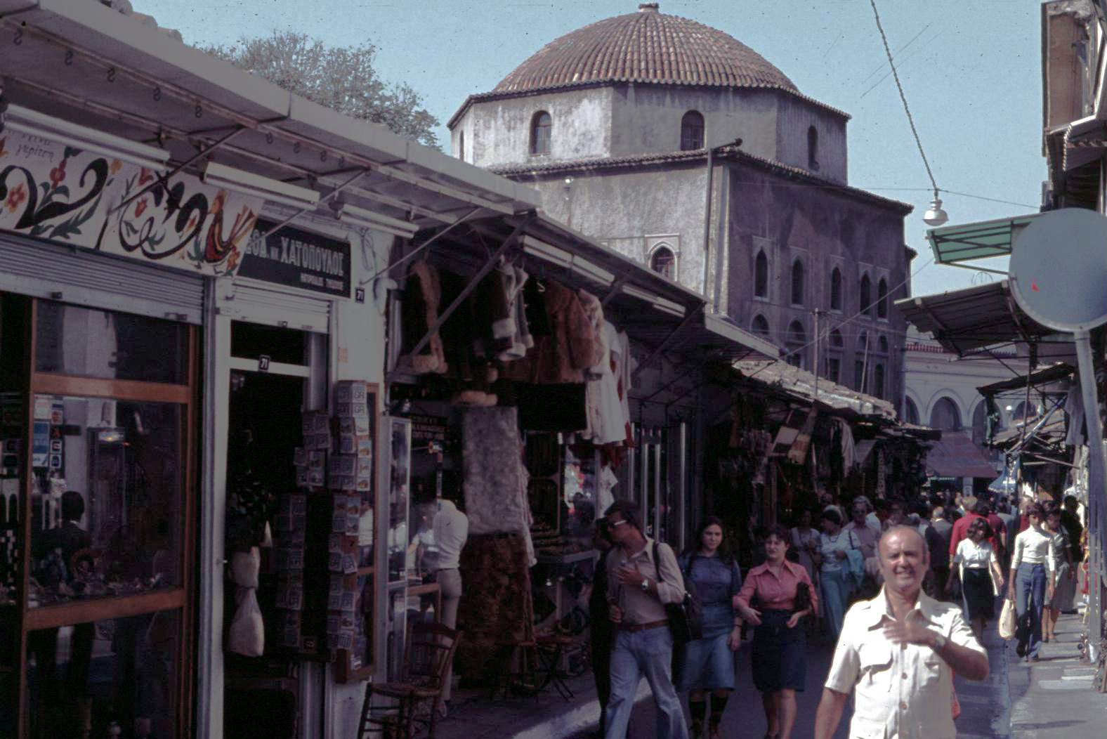 rue Ermou, prise en 1973 et de nos jours; notez les