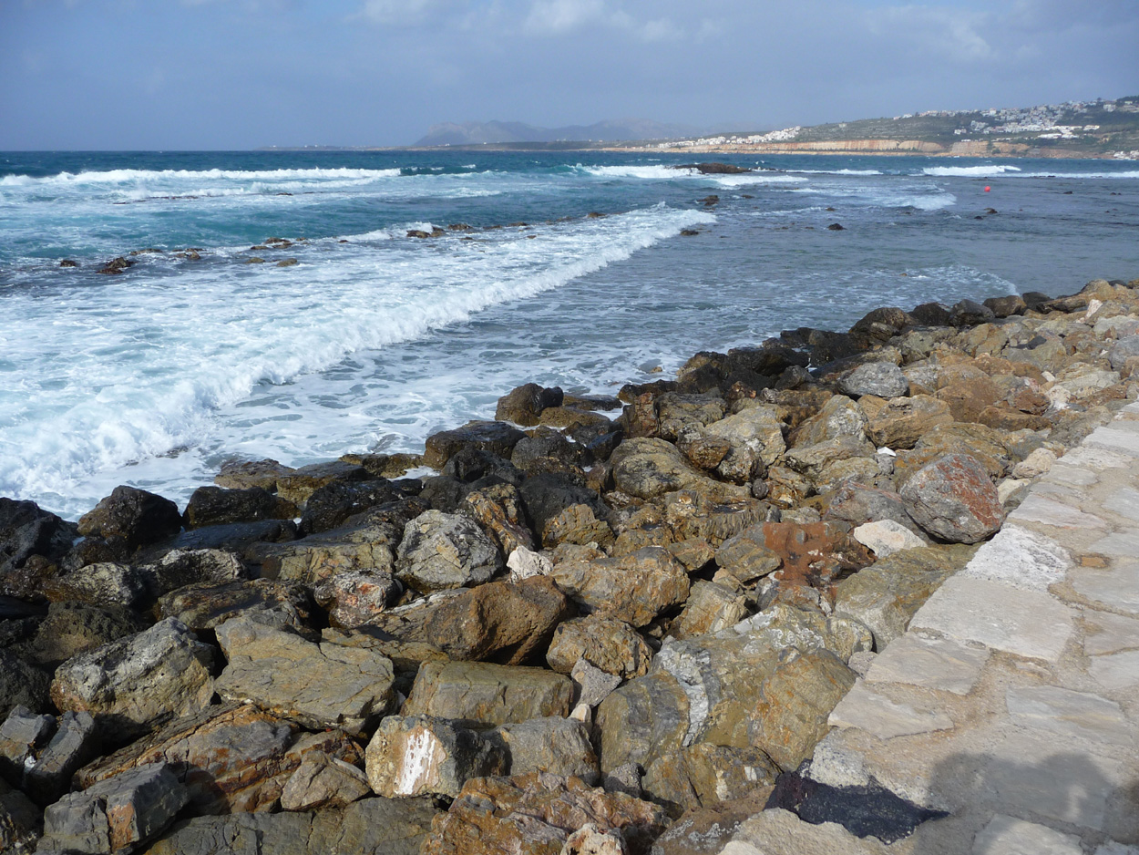 Beaucoup de vent à Hania et la mer est démontée. Les berges du petit port sont submergées et les bars ou restaurants sont envahis par les eaux comme à chaque fois. De la pluie également et les promenades se feront entre les gouttes. Pas e chance pour nous car la semine précédente le temps était magnifique. En ce début de saison pas mal de restaurants fermés mais il en reste suffisamment (et des bons) pour nous permettre de faire de bons repas. Je rappelle qu'il faut éviter le resto Venetto où nous avons été arnaqués une fois, fuyez-le et allez dans un des bons restos de la ville (voir la page restaurants).