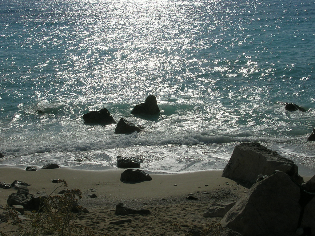 droite. Ci-dessous la plage d' Avali un jour avec vagues
