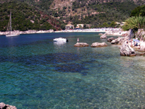 Vassiliki est donc une station agréable mais assez encombrée. Le petit port de Sivota au sud Est reste peu fréquenté et la visite est agréable, pas mal de restaurants et cafés mais c’est tout, pas de grandes constructions depuis notre passage en 2004. Qualques tavernes dont une très bonne où nous avons déjeuné. Juste à côté la plage de Poros, appelée aussi Mikros Gialos est également un coin pas trop encombré et agréable. Ce secteur Sivota – Poros est le coin de l’île le moins envahi et plaira donc à ceux qui craignent la foule. Ci-dessous une vue de la plage de Poros