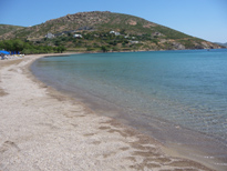 Au sud de Chora quelques plages : Grikos et Petra en face de l'île de Tragonisi. A Grikos un palace en face de la mer où on trouve déja quelques clients mais aussi des maisons/hôtels en ruine, signe que l'activité touristique n'est pas au mieux. C'est néanmoins la plage la plus développée.