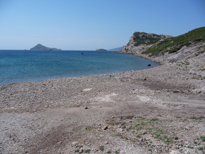 En remontant vers Skala la baie de Sapsila avec une petite plage.