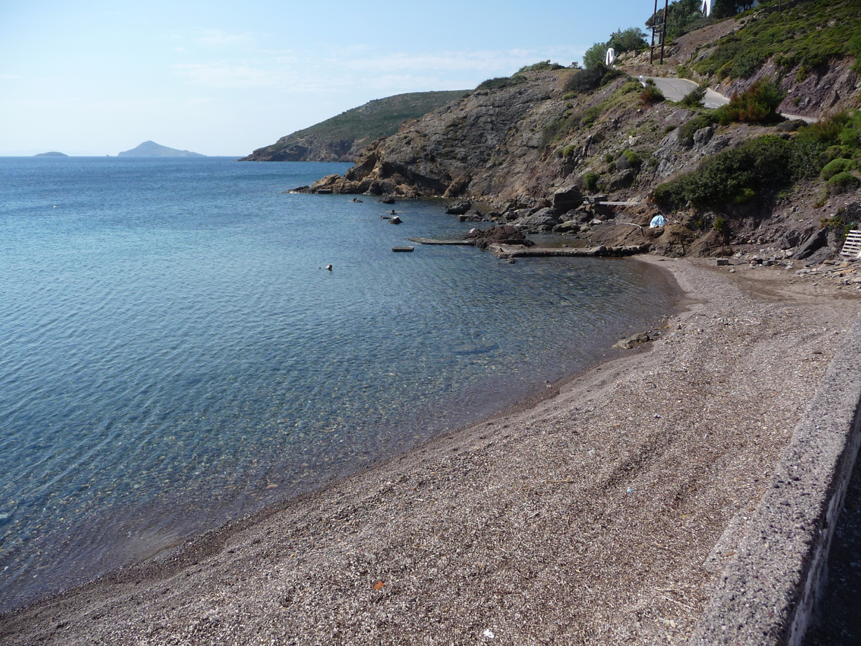 Un peu plus au nord Agriolivadi, plage de gravier/sable, plus grande et plus aménagée, l'eau est très transparente. On y accède par deux routes différentes (étroites mais en bon état) depuis la route principale.