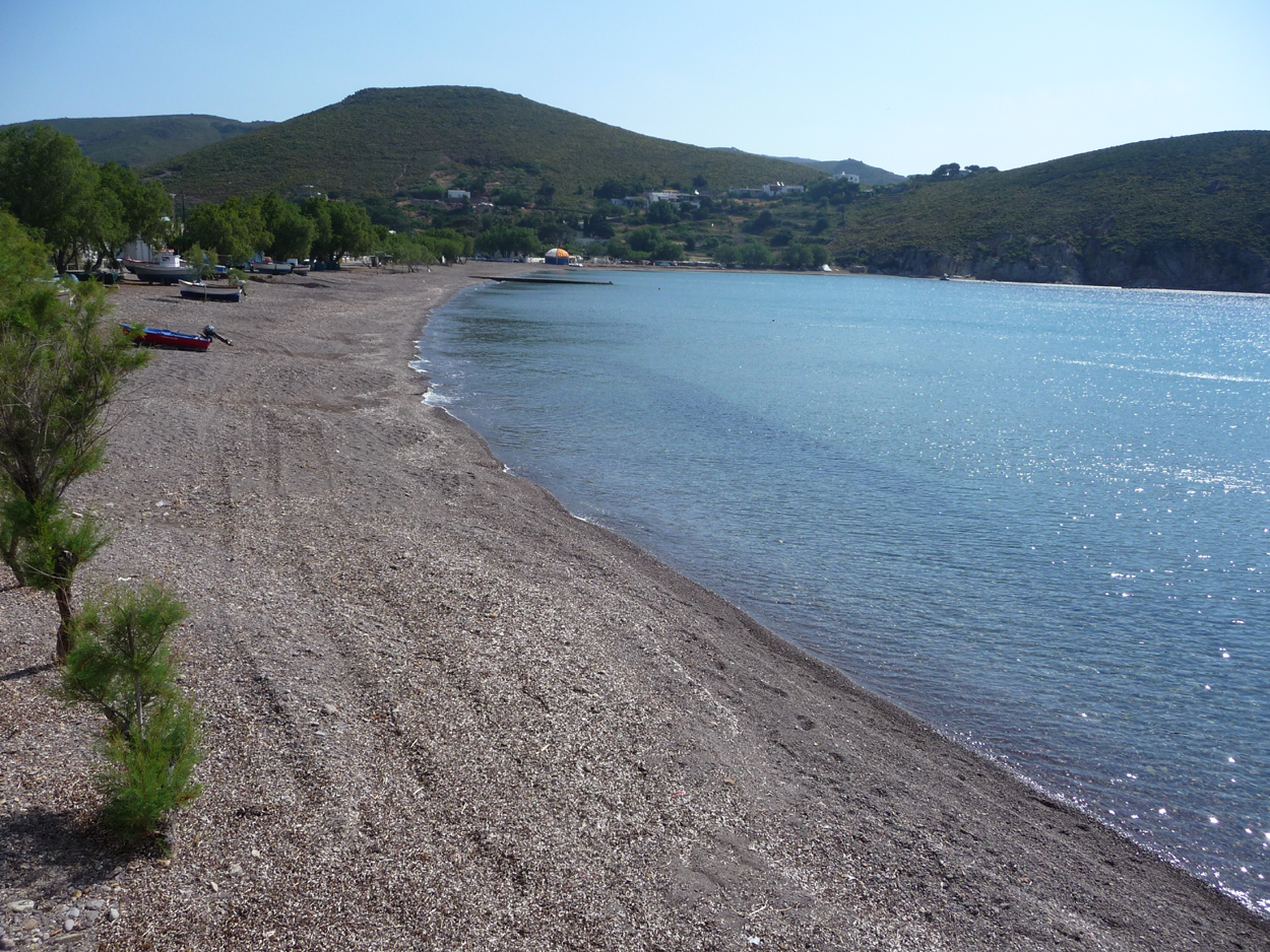 Au nord de Skala on trouve de jolies petites plages, dans l'ordre Meloi, Agriolivadi, Vaghia, Liginou, Livadi, Geranou et Lambi célèbre pour ses galets multicolores tout à fait au nord. Je ne parle ici que des plages accessibles par une route goudronnée, plus ou moins large, plus ou moins abimée. Une des plus célèbres dans le sud, Psili Ammos n'est accesible que par une piste, nous n'y sommes pas allés.