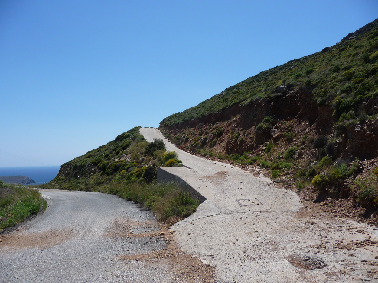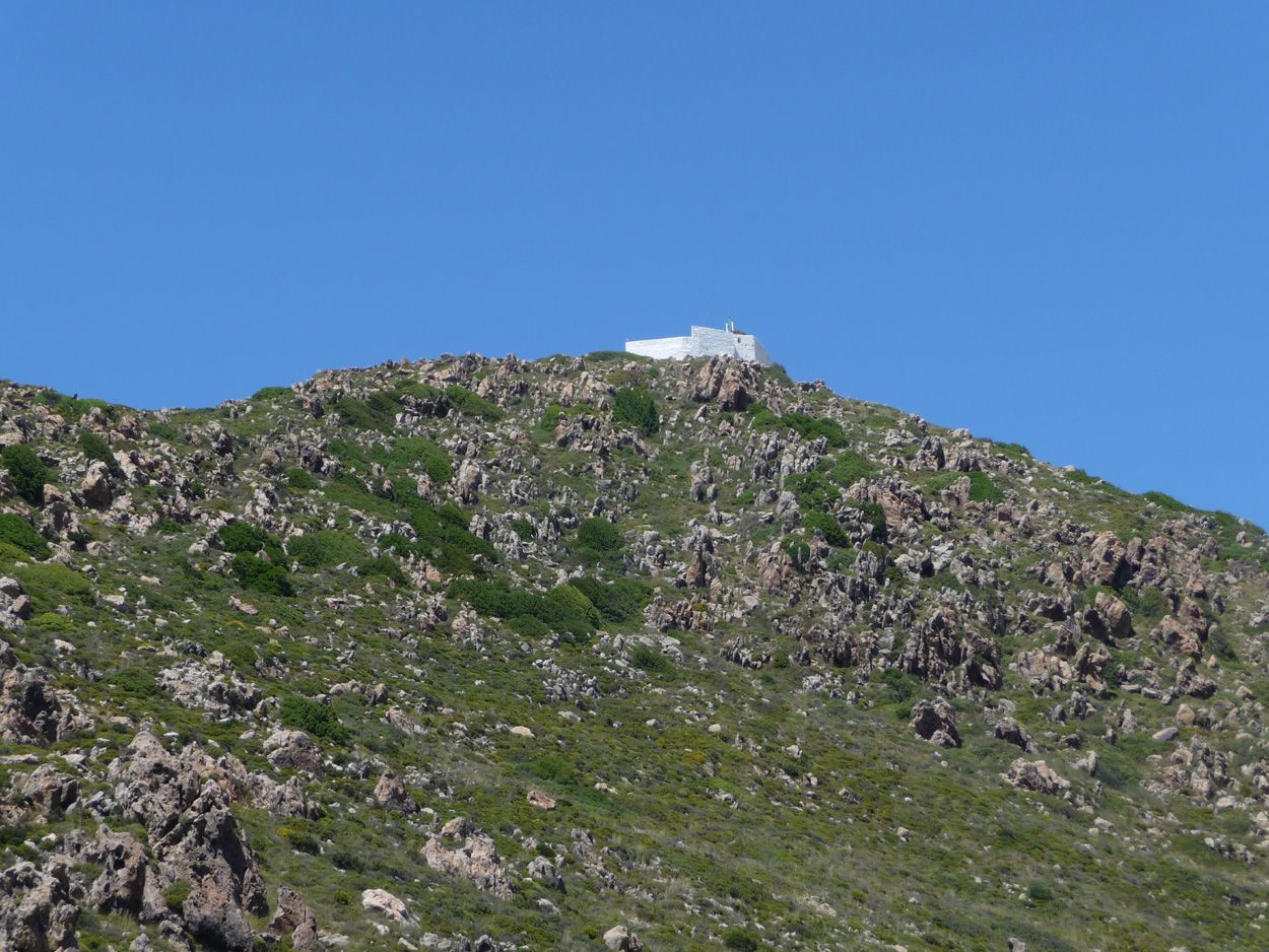 Dans le sud également le mont Profitis Ilias. Dans ce secteur une vue superbe sur le sud de Petra. Nous ne sommes pas montés en haut du mont nous contentant de le voir d'en bas car la "route" qui y mène, bien que goudronnée est très étroite et très pentue.