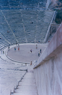 Comme tout le monde essayez de faire tomber une pièce au milieu du théatre pour apprécier l'accoustique; plus original, un choeur grec formé par plusieurs femmes chantant des chansons anciennes : très agréable.