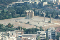 En poursuivant on arrivera à l'agora romaine ; dans ce secteur il y a eu pas mal de reconstruction pour les jeux et des monuments ou colonnes ont été relevées. En passant par l'acropole, le théatre de Dionysos, on arrive près de la porte d' Hadrien.