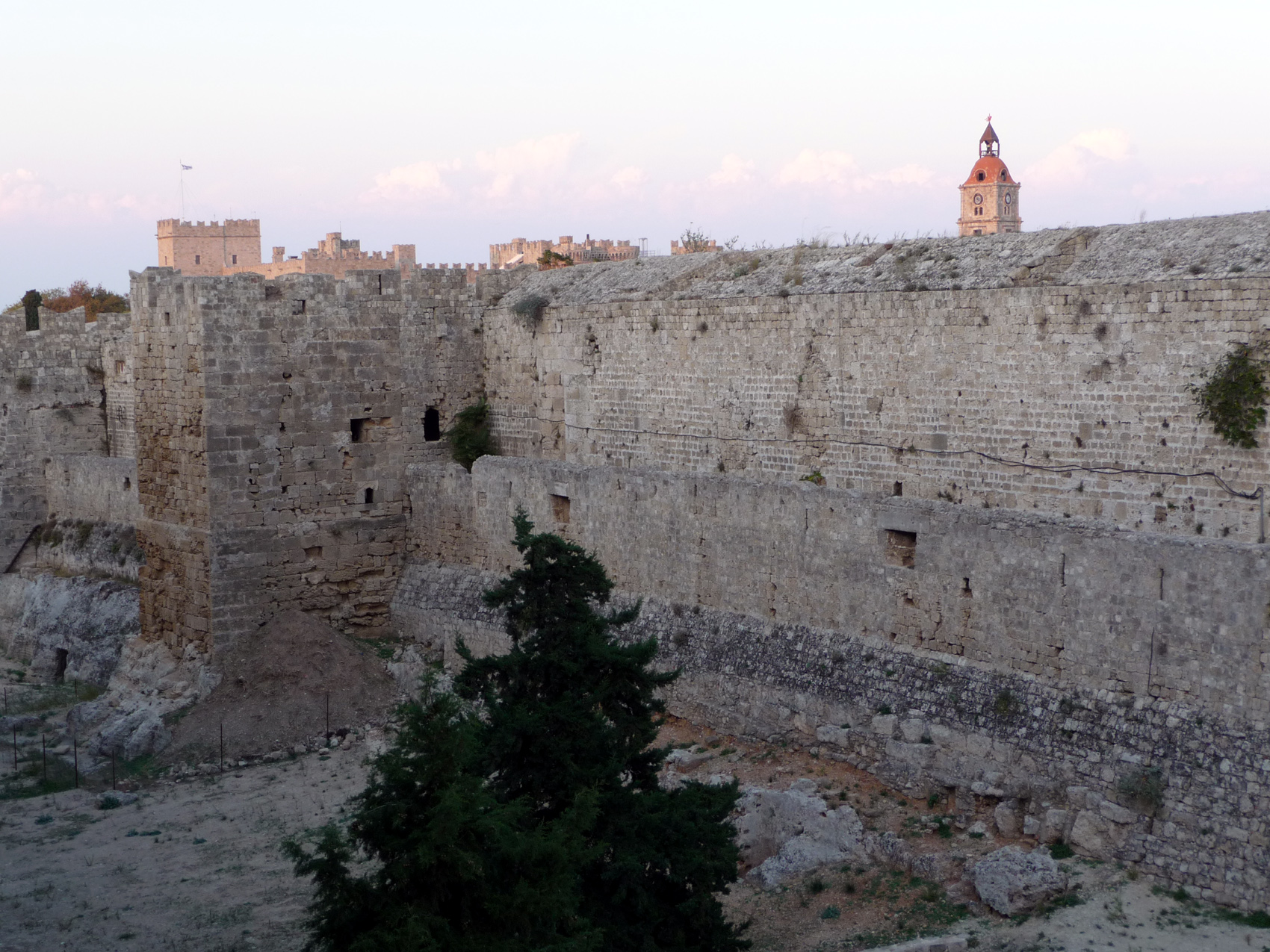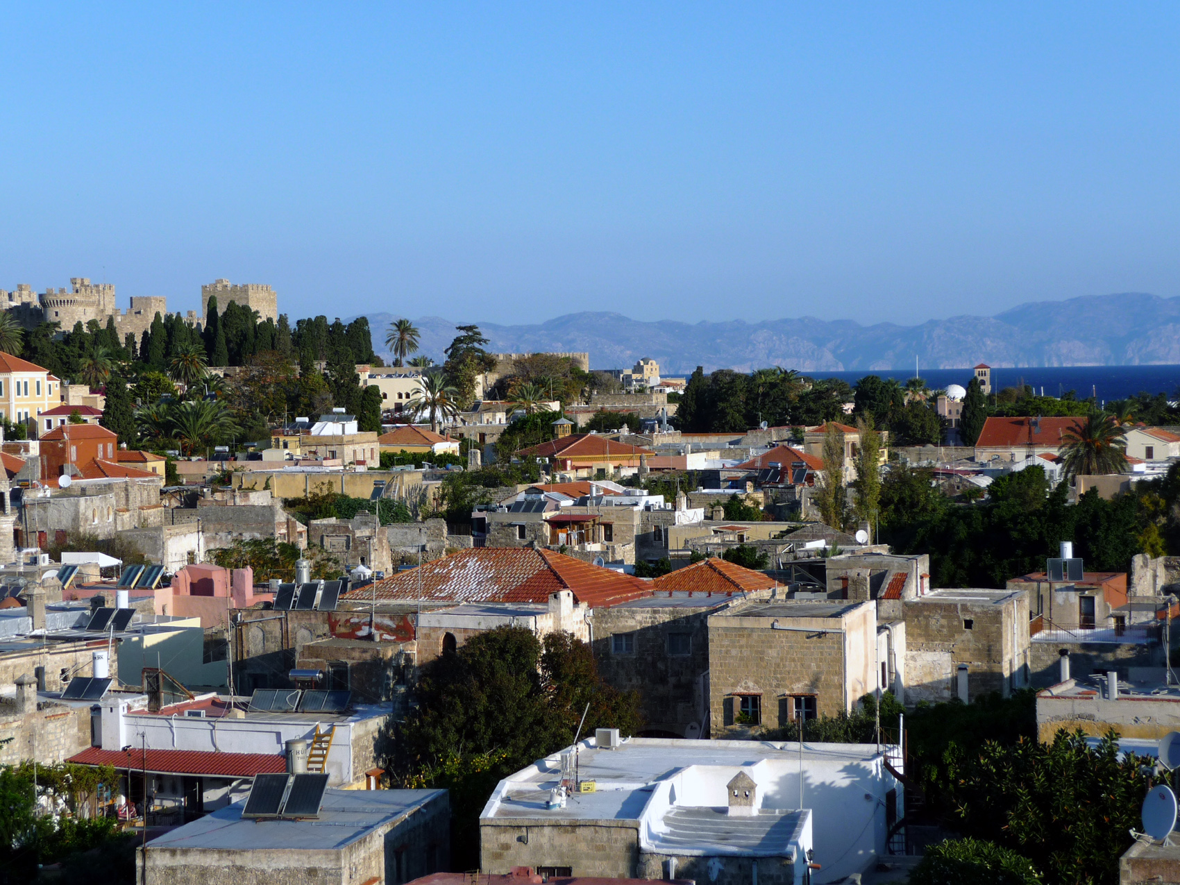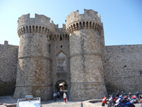 A l'aéroport nous sommes accueillis par l'hôtel Andréas où nous avons choisi de séjourner à nouveau. On s'embarque dans une voiture presque aussi vieille que les murailles de la ville mais qui a l'avantage énorme d'être très étroite pour circuler jusqu'à l'hôtel, situé dans une ruelle du vieux Rhodes. Le chauffeur a vraiment le compas dans l'oeil et là où je n'aurais même pas envisagé de passer il s'engage sans ralentir, et sans toucher les murs qui frôlent dangereusement la carosserie.