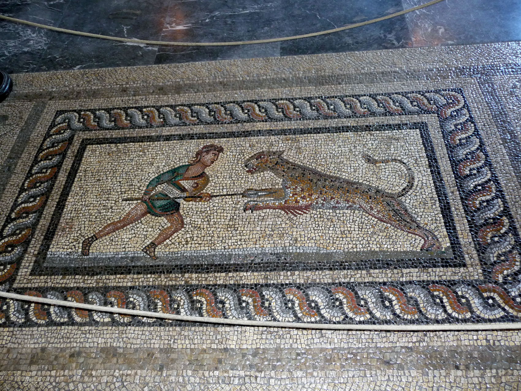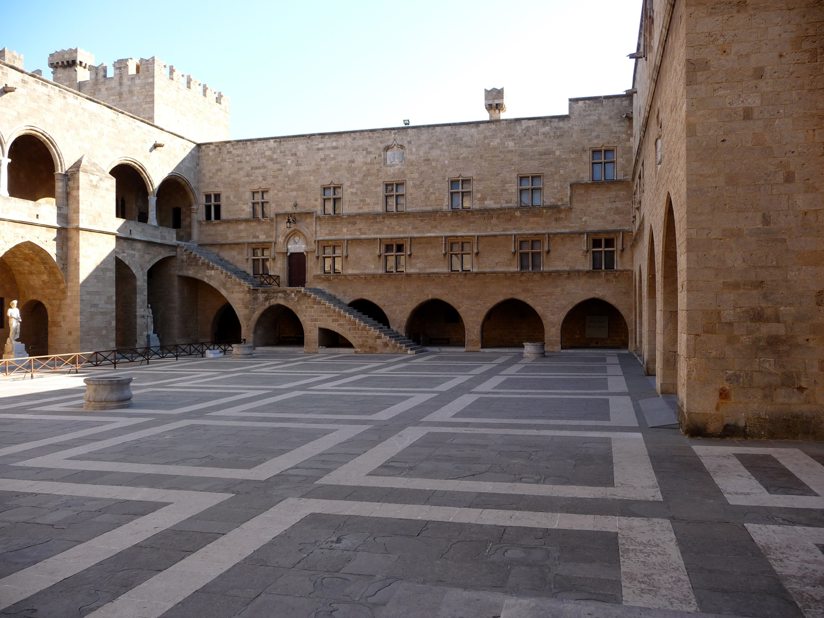 entièrement reconstruit par les italiens; si vous avez la chance comme nous de le (re)visiter seuls sans l'envahissante compagnie des groupes de touristes badgés et précédés de leur guide à parapluie vous serez étonnés par la qualité du silence qu'on ressent à l'intérieur de ces murs épais . De superbes salles avec des mosaîques ramenées de l'île de Kos. La façade principale du palais est en réfection et donc recouverte d'échafaudages, dommage pour les photos. Vous en verrez dans le voyage de 2004.