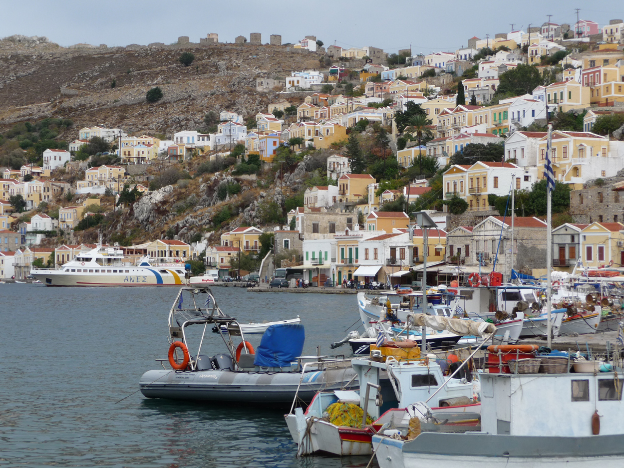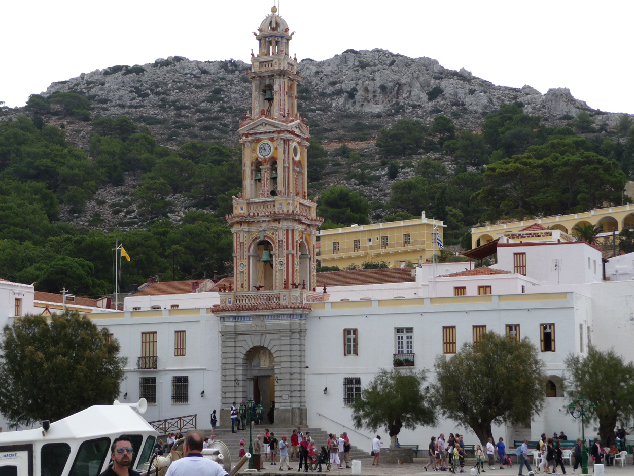 Nous avons voulu cette année aller faire un tour sur l'île de SYMI. Plusieurs bateaux d'excursion font cette balade en plus des ferries; nous sommes partis avec Sigma travel qui a un bureau en haut de la rue Socrate au numéro 122, principale rue commerçante de la vieille ville. Quand nous sommes passés prendre des renseignements nous sommes tombés sur une belge très sympa, ce qui nous a incité à passer par eux. Ils ont deux gros bateaux, avantage quand la mer remue un peu. Le prix est de 22 euros par personne et ils peuvent vous amener par mini bus de votre hôtel jusqu'au bateau. La visite débute, ou se termine selon l'humeur du commandant, par le monasstère de Panormitis