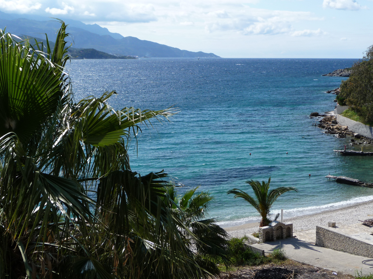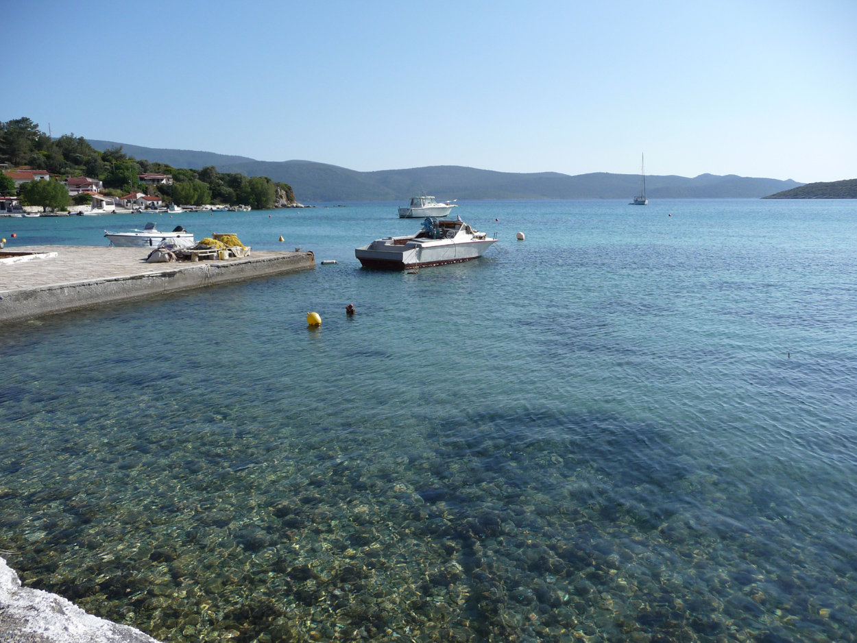 Kervelli et au fond la Turquie. La couleur des eaux est magnifique et
