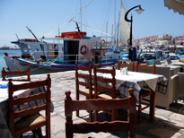 Anecdote : alors que nous étions assis en terrasse au soleil (ça va, vous voyez bien le tableau vous qui lisez ces lignes sous un ciel gris et menaçant ?) je commande deux jus d'orange; en m'entendant commander en grec un homme attablé à côté me complimente et me demande d'où je suis ; lui ayant répondu il me parle en français. Je le complimente à mon tour sur son français et il me répond qu'il parle français mieux que moi (c'est presque vrai). Il me demande alors dans quel hôtel nous sommes descendus. C'est que ce monsieur est le patron de la pension DREAM'S (voir page hôtels) et il me dit alors que dans sa pension les chambres sont mieux et moins chères. Il me dit également que le patron de l'hôtel Pythagoras est très bien, par contre sa famille ... Par exemple l'agence de voyage LTSA sur le port dépend de sa famille (c'est pour celà qu'on trouve des cartes de visite de LTSA dans l'hôtel). A ce propos il me donne un bon tuyau : apparemment cette agence LTSA (située vers la fin du port en allant vers l'hôpital) pratique des tarifs à la tête du client; il me dit présentez vous avec un sac à dos et l'air "pas trop riche" et demandez une chambre à 25 euros et vous aurez la même chambre chez Pythagoras que vous auriez louée 30 ou 35 euros par Internet; à vous d'essayer la combine ... Comme je suis comme ST Thomas je demande à voir ses chambres et donc après avoir dégusté nos jus d'oranges (hmmm ) nous lui emboitons le pas pour aller vers sa pension située dans une rue piètonne (et pour cause des escaliers sur toute la rue). Alors il est vrai que ses chambres sont dans l'ensemble de meilleure qualité que celles de Pythagoras et mériteraient d'être elles aussi dans le GDR. Si vous voulez essayer cet hôtel voyez la page adéquate de ce site. En tout cas le patron est charmant, très volubile et parle un excellent français ; vous pourrez donc lui écrire dans cette langue.