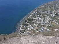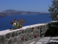 Nous avions passé trois jours à Santorin en 2003 mais le mauvais temps avait perturbé le séjour. Cette fois-ci nous avons passé 5 jours sur l'île sans avoir de pluie : 3 jours de grand soleil et de ciel bleu et 2 jours plus gris mais qui permettaient quand même la promenade ; nous avons donc pu visiter l'île sous tous ses aspects. Une remarque : le vent a été en permanence assez fort et plutôt froid (autour de force 6 selon la météo) et la température était de ce fait douce au soleil mais assez froide à l'ombre : le pull était nécessaire. L'île est petite et au bout de deux jours on arrive à s'orienter sans carte uniquement en regardant le paysage ; c'est simple : le point culminant (avec le monatère au sommet) se repère facilement, le village de Pyrgos juste devant, les villages de la caldeira sont repérables et la pointe du phare au sud ouest. Nous avons loué une voiture (Opel Corsa) chez Vazeos que nous vous recommandons : excellent accueil (en anglais), voiture en très bon état et prix intéressant (25 euros par jour). Il a un bureau à Oia presque en face d'Olympic villas ou Strogili. Nous avons choisi de séjourner à OIA chez LAVA'S OIA et nous ne l'avons pas regretté : 108 euros la nuit (en réservant par INTERNET) pour des petites maisons bien aménagées (plus cher qu'Olympic Villas mais beaucoup plus confortable) ; la vue est évidemment fantastique (voir ci-dessous) et le plus est dans l'accueil de la patronne qui parle un français excellent. Elle est architecte de métier et a construit elle-même ses maisons. Elle vous guidera si vous ne connaissez pas l'île et est toujours prete à vous aider ; si vous voulez consulter son site http://www.greekhotel.com/cyclades/santorin/oia/lava/home.htm . La photo 360 degrés qu'on voit sur son site est celle de la maison que nous avions louée, c'est exactement comme au naturel, il n'y a pas de tromperie, allez-y en confiance et donnez lui mon bonjour (je lui ai donné l'adresse de mon site).