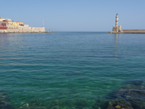 Beaucoup de monde à Hania, en particulier des américains, très bruyants. La rue Halidon est noire de monde le soir, tout le monde se promène en profitant d'une température plus clémente. Promenades agréables dans la vieille ville ainsi que sur la digue. Pour une fois pas de vent et le port vénitien est calme, pas de vagues non plus le long de la digue. A ma grande surprise nous voyons une grande tortue dans le port de Hania en eau peu profonde qui repart vers la sortie, je n'en avais jamais vu en Grèce.