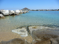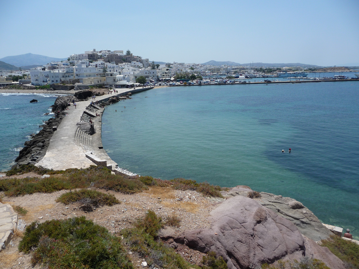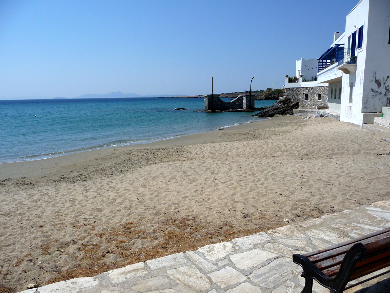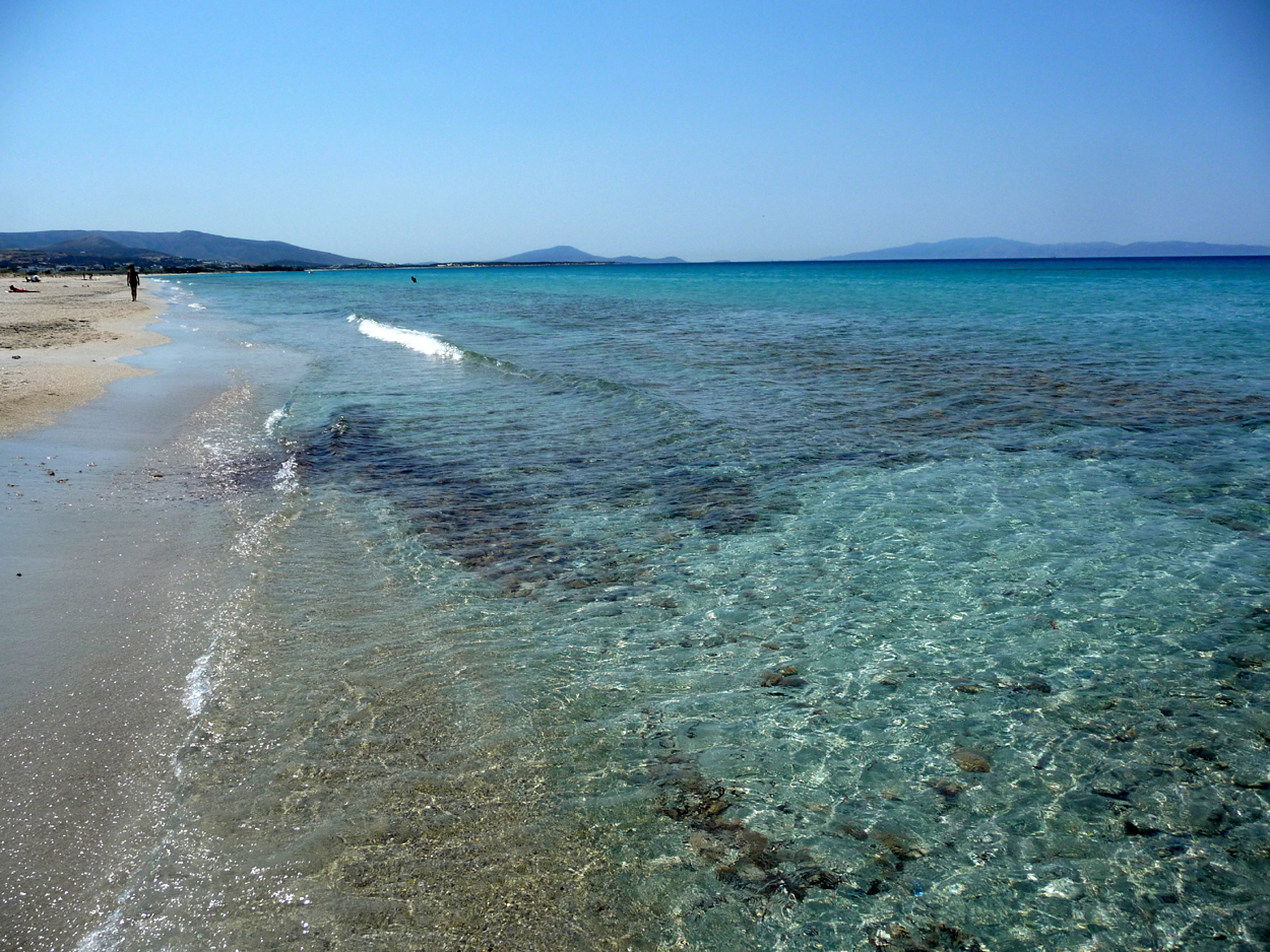 Naxos est une grande île qui a deux avantages : premièrement ses superbes plages de sable qui se succèdent sans interruption sur la côte au Sud de Chora, avec évidemment du monde mais de moins en moins quand on descend vers le sud. Deuxièmement : de superbes villages et points de vue dans la montagne à l'intérieur des terres. Si on veut s'éloiger de la côte, je recommande de louer une voiture plutôt qu'un scooter car les distances sont assez longues et ça monte parfois assez fort.