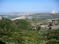 Naxos c'est aussi des villages de montagnes et des paysages superbes à l'intérieur des terres. Comme il faisait très chaud nous avons limité les déplacements. Ainsi nous n'avons pas suivi la côté nord ouest, que nous avions déja vue. Par contre nous sommes allés jusqu'à Moutsouna sur la côte EST. En passant par l'intérieur, très beaux paysages vers Halki (là où on peut visiter la distilleris du Kitro), Filoti (village curieusement bâti sur le flanc d'une colline, puis Apiranthos. Voici une vue qu'on peut avoir en se garant au premier resto juste avant Apiranthos.