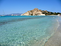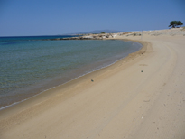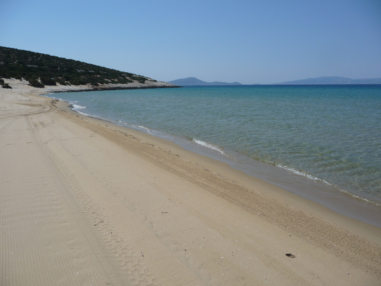 Après Plaka la plage de mikri vigla, séparée en deux par un promontoire rocheux. Ici, au moins en juin, on commence à voir moins de monde. Comme on peut le voir c'est une grande et belle plage; le secteur est beaucoup moins construit qu'au nord; si vous aimez être un peu plus tranquille il faut venir à partir d'ici.