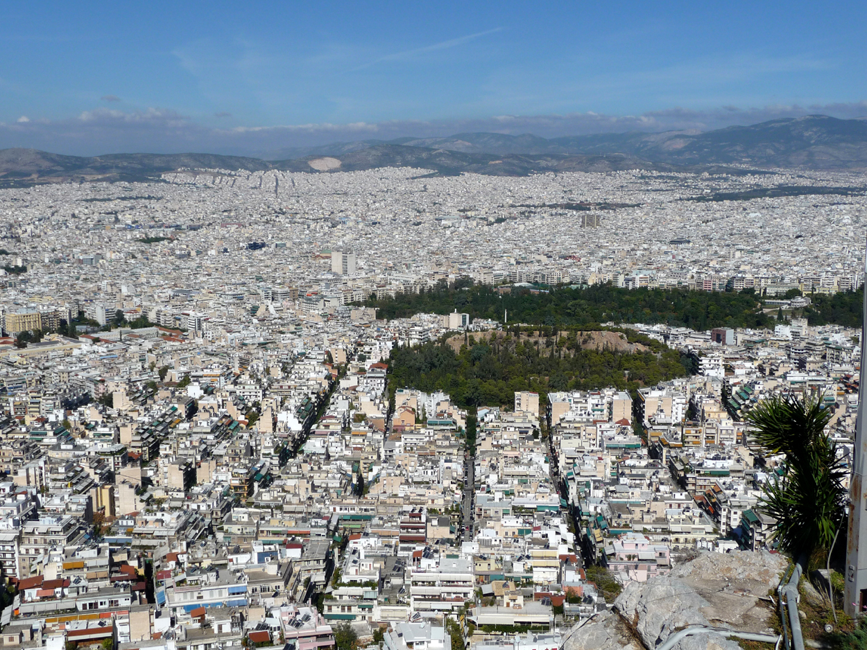 Ce mois est un des plus agréables pour visiter Athènes: beaucoup moins de monde qu'en Juin et une température idéale (la météo annonçait 24 degrés l'après midi et 19 le soir) . Nous avons profité de cette température douce pour grimper pour la première fois sur le mont Lycabette, plus haut sommet d'Athènes. Déja en partant de Vassilis Sofias il y a pas mal d'escaliers à grimper; en Octobre ça va mais en été ... Et puis nous avons fini la grimpettte avec le funiculaire souterrain (coût AR = 7,50 euros). Le trajet est très rapide mais les départs se font toutes les 30 mn. Je me pose la question : comment font-ils en été ? avec une telle fréquence on doit jouer des coudes pour grimper ou descendre. Pourquoi un rythme si peu élevé ? La visite vaut vraiment le coup ou le coût car la vue est superbe, à 360 degrés sur Athènes; on voit le Pirée au loin et bien sur l'acropole avec le stade de marbre pas loin, et de l'autre côté la partie qu'on ne voit pas du haut de Philopappou puisqu'elle est cachée par le Lycabette. Un peu de monde en haut mais ça reste raisonnable; par contre en plein été je déconseille la visite car on doit se marcher sur les pieds.