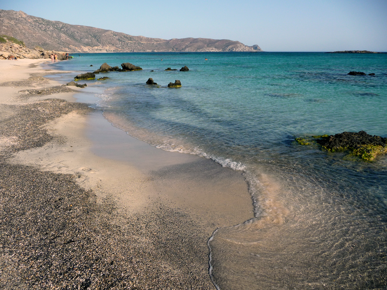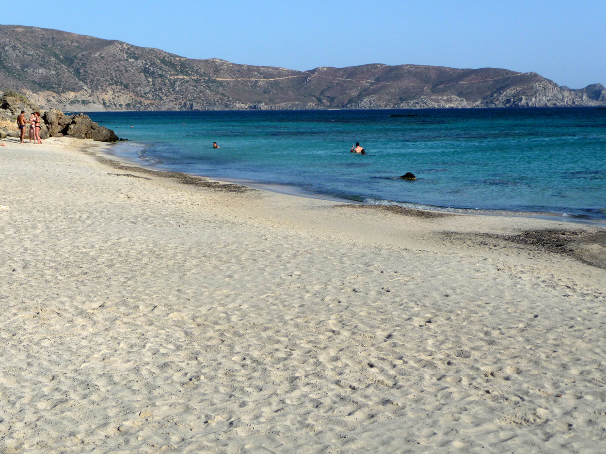 La route de Falassarna à Elafonissi est sinueuse et étroite, parfois on ne peut se croiser et donc s'il y a un autocar ... on met environ 1 heure pour faire le trajet. Une belle route toute neuve pour y arriver en passant par Livadia ; il est préférable de la suivre plutôt que l'autre qui passe par l'intérieur des terres. L'hôtel est juste à l'entrée de la piste qui mène aux parkings. Excellent accueil et superbe studio tout neuf (le n°6). Alors Elafonissi c'est beau ? c'est envahi ? Et bien oui et oui.
