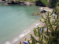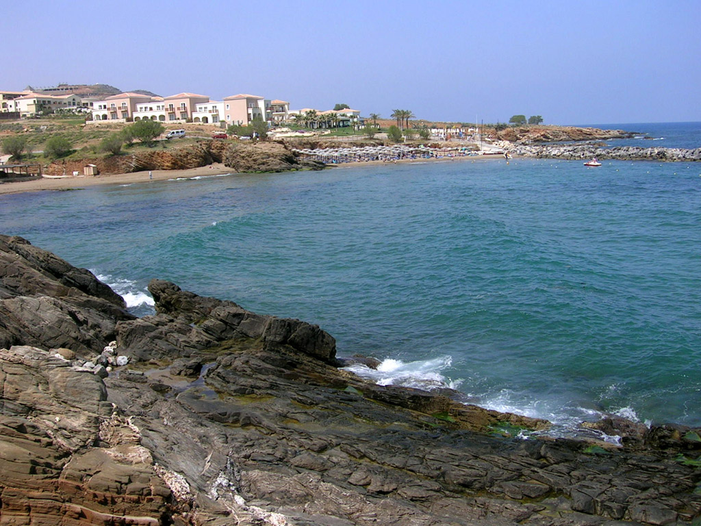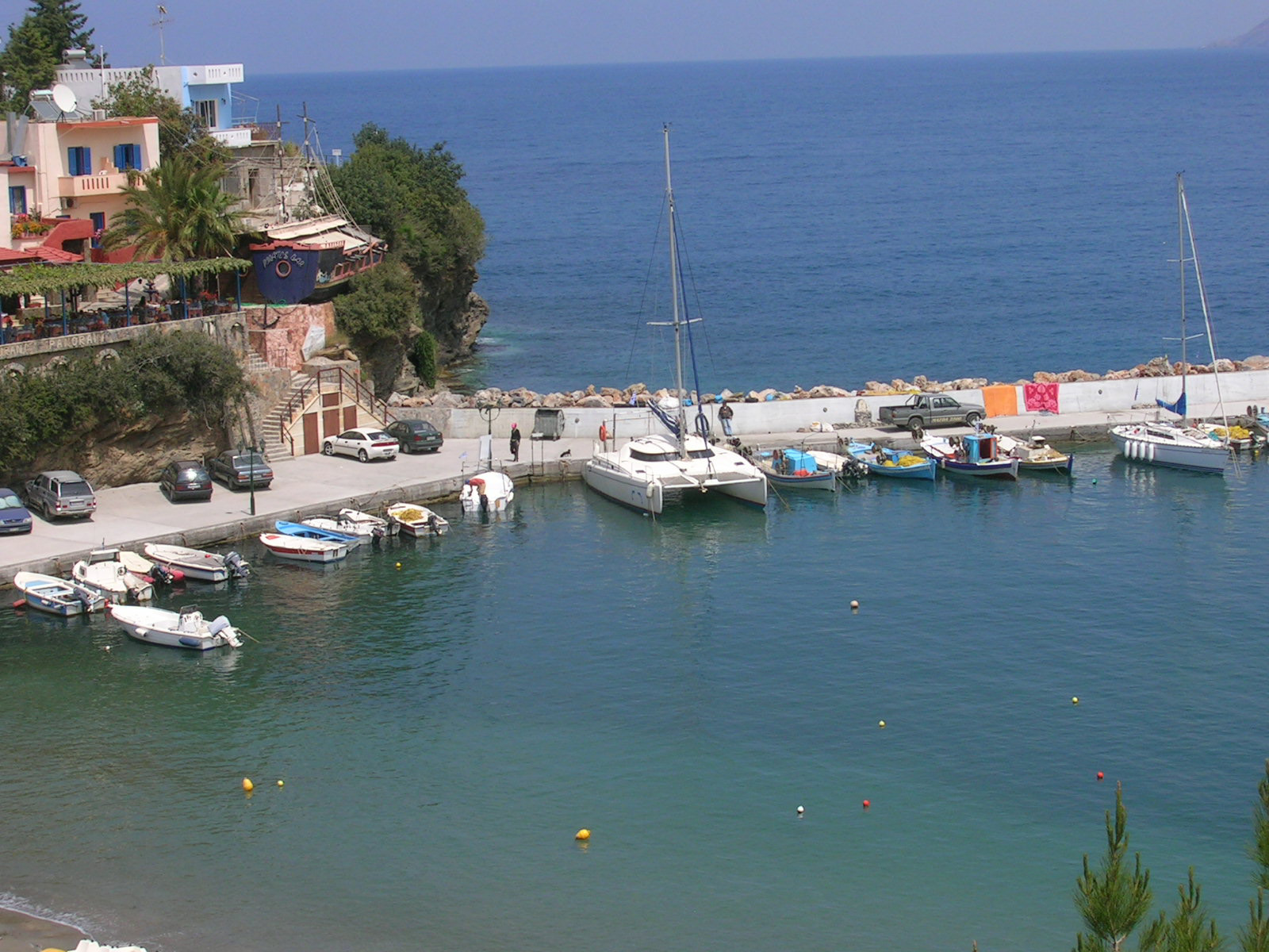 Autre arrêt à Bali. Ici le plafond de construction a déja été dépassé, ce village est fichu et l'été doit être invivable ou alors semblable à notre bonne vieille côte d'azur. Des constructions neuves partout, soit terminées soit en cours, des hôtels, des pensions, des loueurs de voitures qui en disent long sur l'affluence en été. Mon conseil si vous aimez la tranquillité : allez-y mais pas en été. Les constructions neuves ne sont pas vilaines d'ailleurs, peintes dans des tons pastel mais qui ne font pas très grec. Il y a une jolie petite plage dans le village (photo de droite) et nous déjeunerons juste au-dessus sur le promontoire d'un restaurant haut perché et très agréable. Mais vue la taille de la plage, s'il y a du monde ! Le port n'est pas vilain mais lui aussi tout petit ; il y a une plage plus grande en dehors du village à droite mais elle est moins jolie.