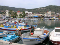 Ci-dessous à gauche une vue du port d'Elounda, et à droite deux photos de Plaka ; sur la deuxième on distingue à gauche une partie de l'île des lépreux de Spinalonga.