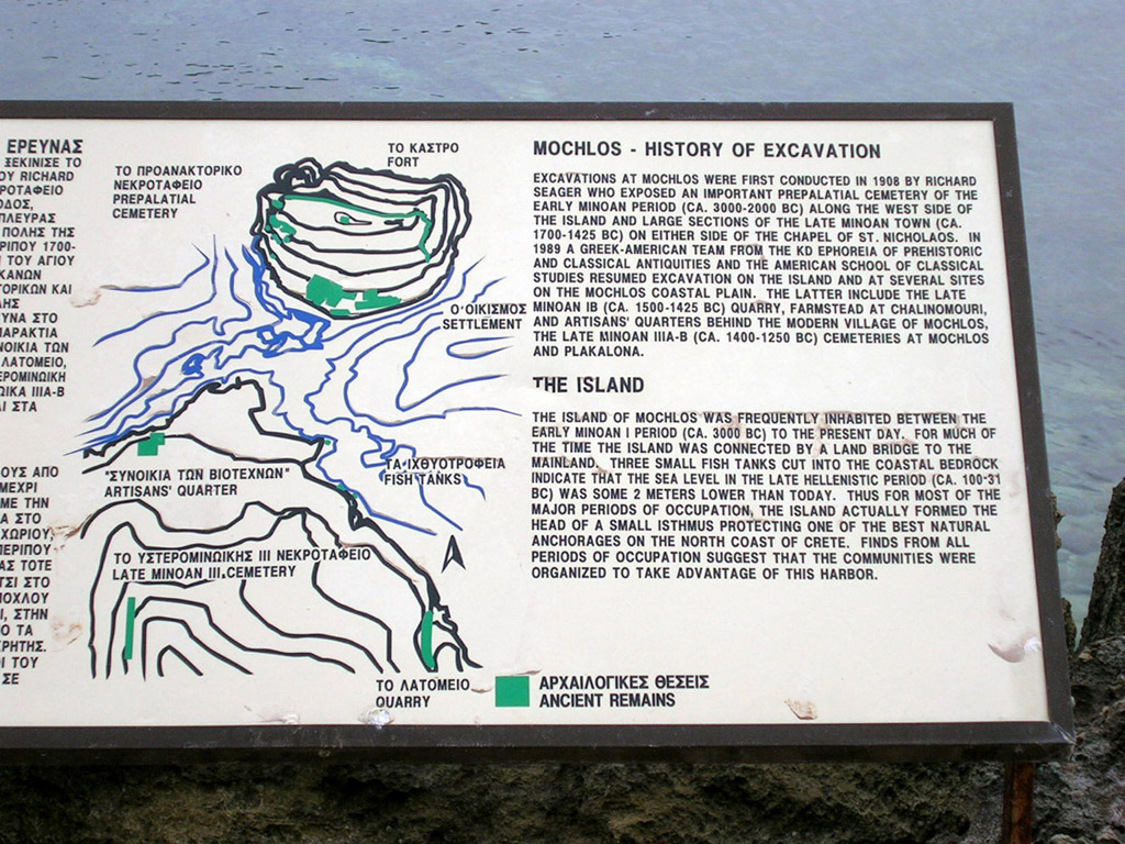 Mochlos par une bande de terre ; l'élévation du niveau