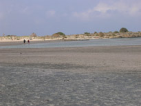 Pour l'après midi nous retournons à Phalassarna. Cette fois je me méfie et je garde mes chaussures pour aller sur la plage ; à gauche sur la "grande plage" il semble qu'il n'y ait pas de pétrole, mais en regardant le sable de près il renferme des petites boulettes noires qui heureusement ont l'air désséchées et ne peuvent plus faire de mal. Méfiez vous quand même pour cet été 2006.